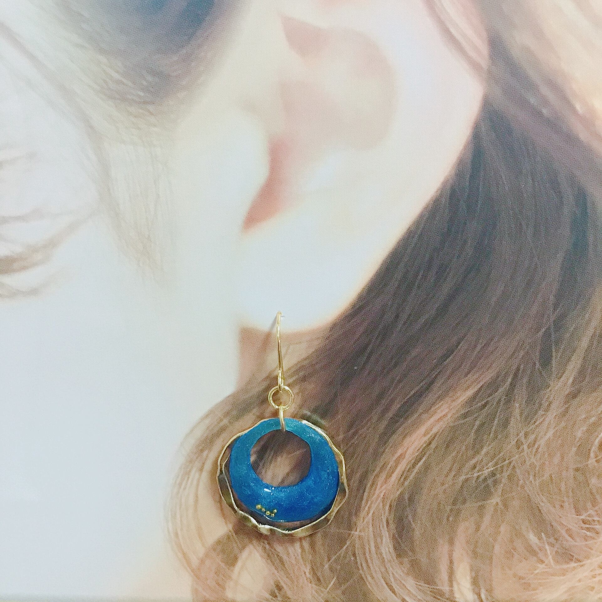 メタリックブルーのフープにでこぼこデザインのリングをプラスして、小さいながらも高級感が出るように仕上げています(*´ω`*)