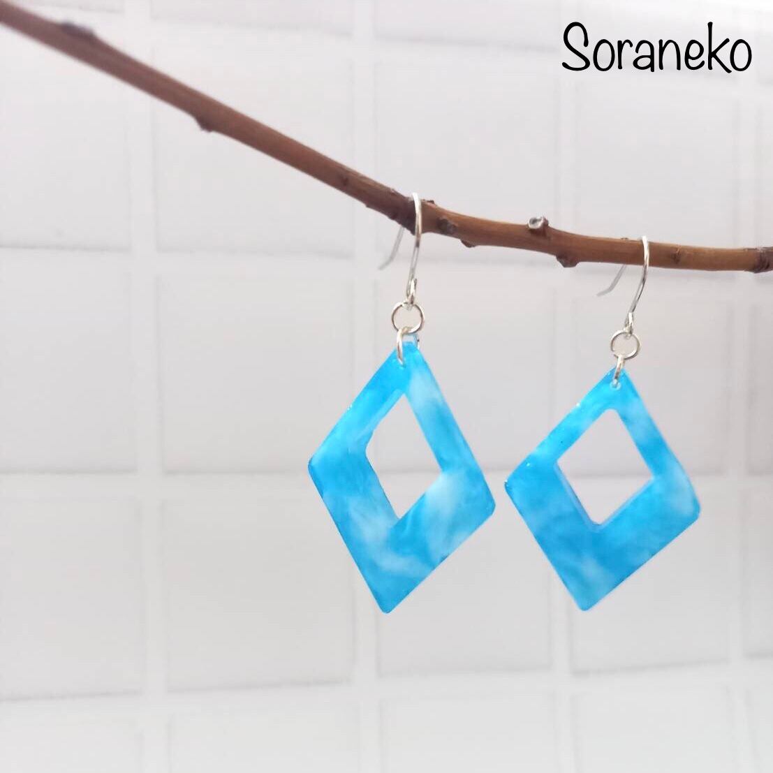 青空に雲が浮かんでいるようなふんわりした色合いのピアスです(*´ω`*)
