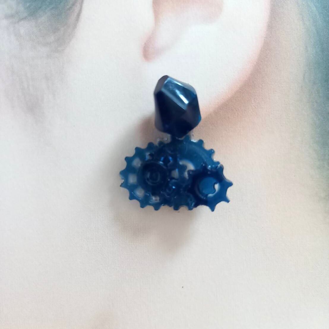 歯車と同じ色で結晶を作り見た目にメリハリをつけたデザインに仕上げています。左右非対称なところもポイントです。
