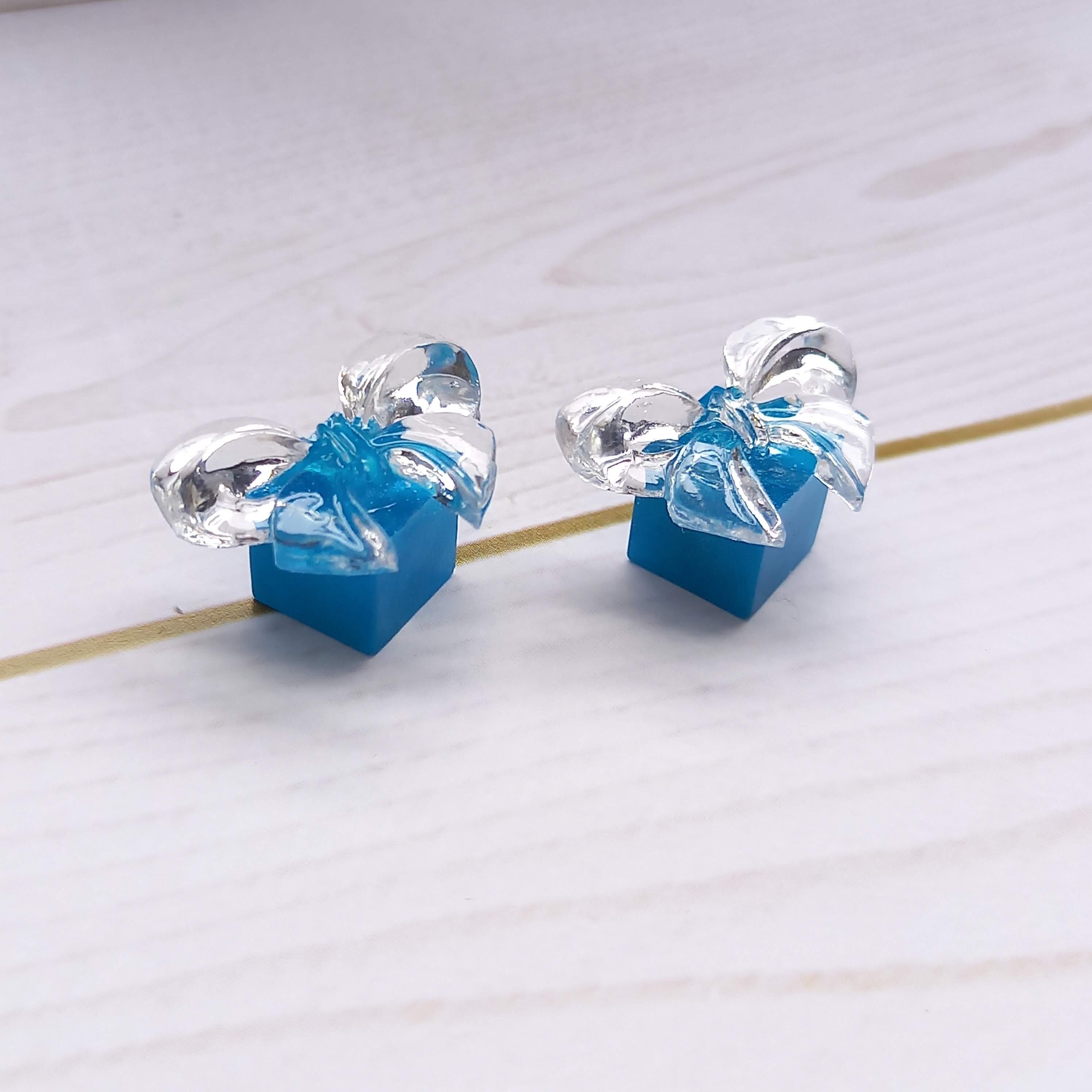 パール入りターコイズブルーの小箱に氷のリボンをかけました。少し明るめのワンポイントが欲しかった方にオススメです。