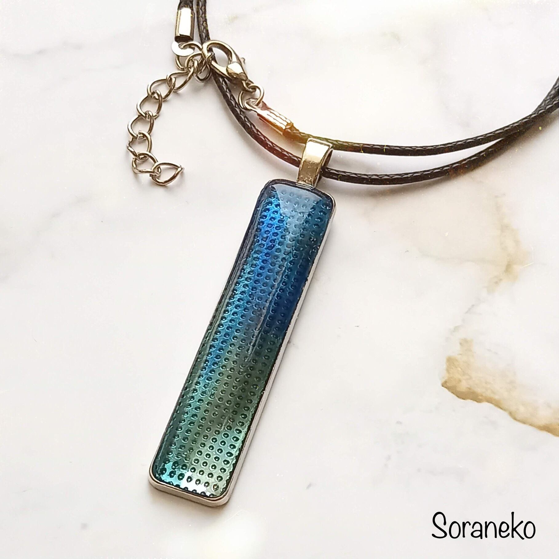 正面からは青のグラデーションが楽しめますが、角度を変えると黒1色になっているかのように見える、表情豊かな作品に仕上げました。