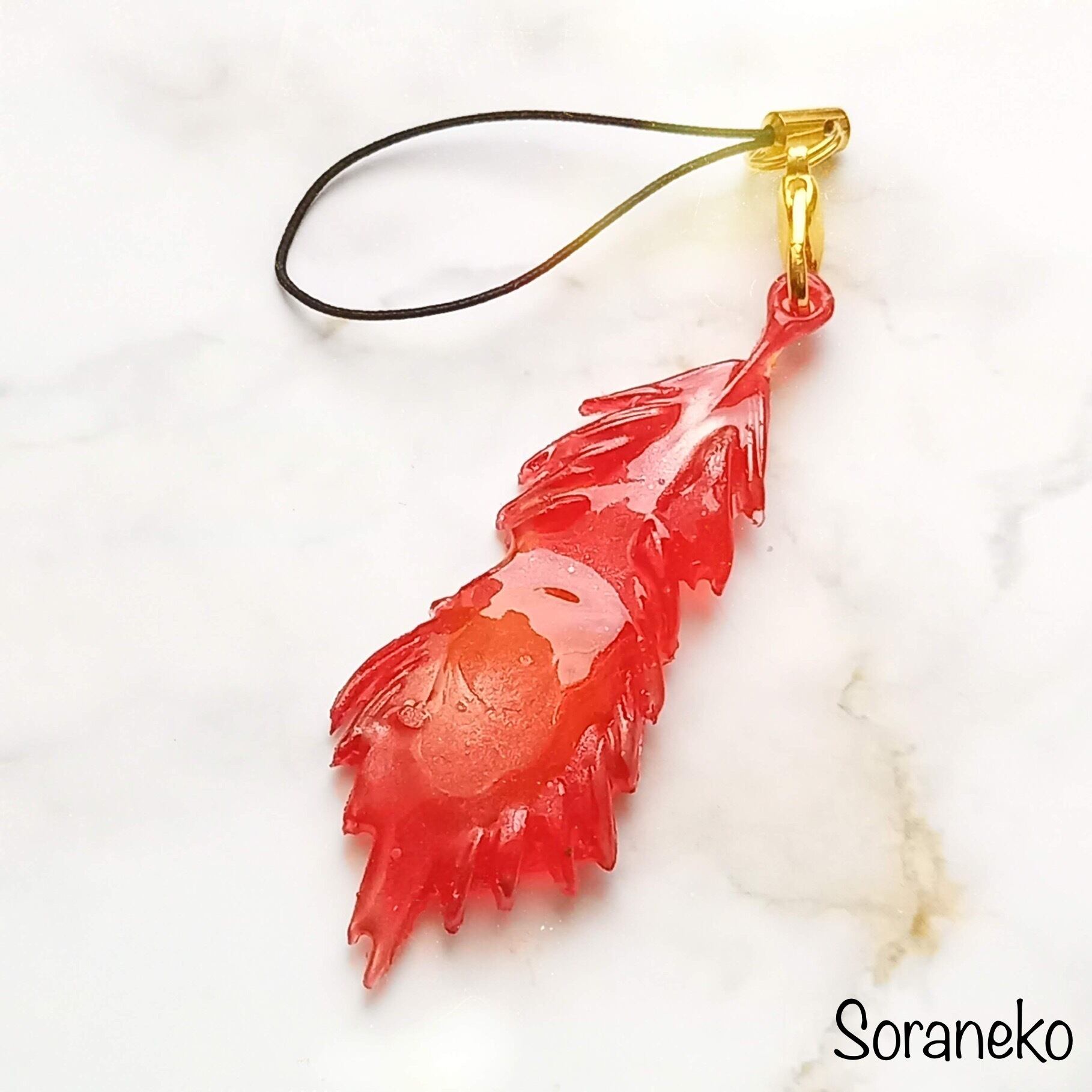 ストラップは燃える炎のイメージでレッドとゴールドを吹き付けています。