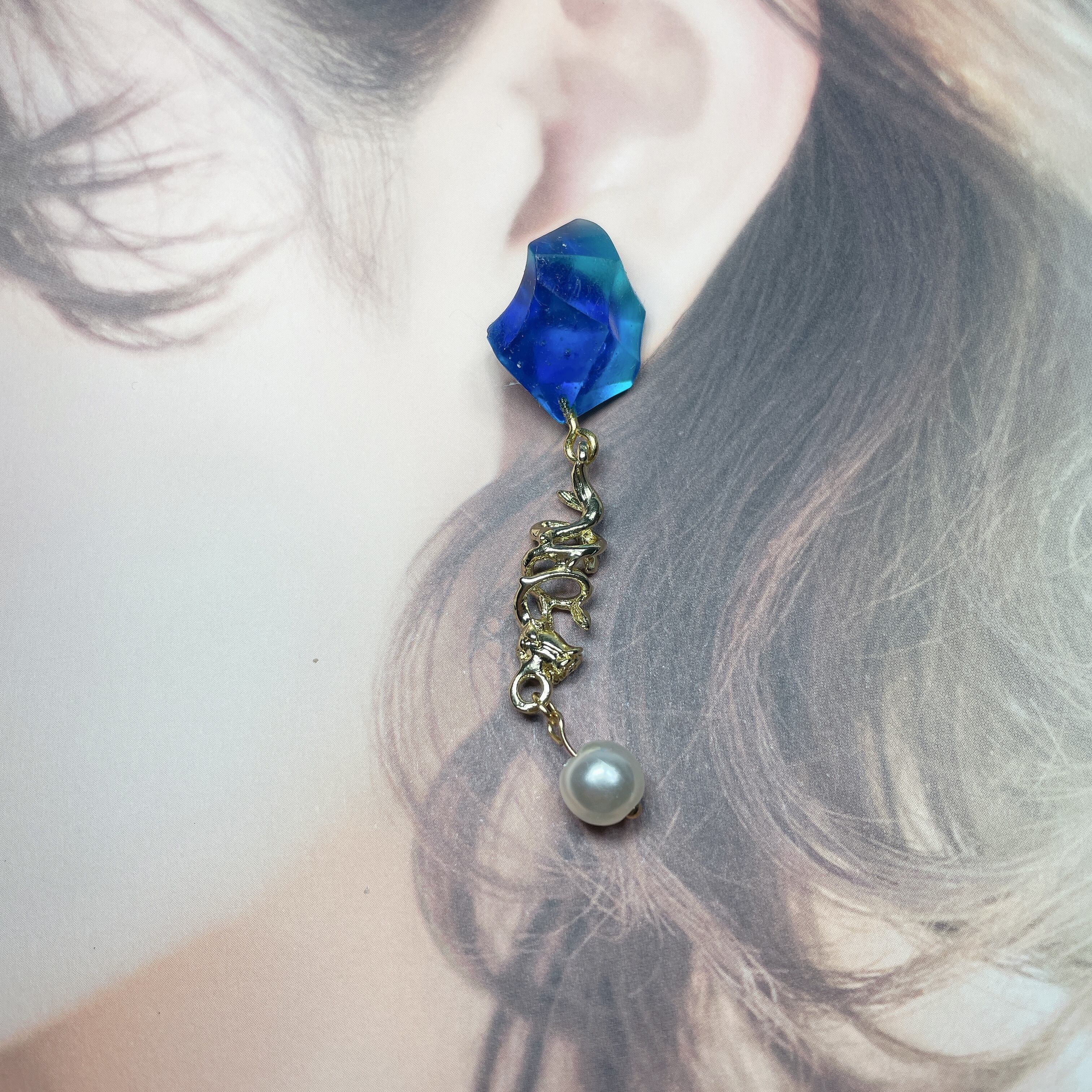 「碧炎 ピアスorイヤリング」は、2色の青のグラデーションが魅力的な、美しい炎をイメージしたアクセサリーです。このアイテムは、日常使いから特別なシーンまで、さまざまなスタイルにぴったりとマッチし、あなたの印象を華やかに演出します。